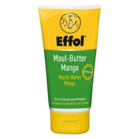 Effol Maul-Butter mit Mangogeschmack dient dem Wohlbefinden und der Zufriedenheit des Pferdes. Das innovative Produkt gewährleistet eine Gleitfähigkeit des Gebisses, damit es angenehm im Pferdemaul liegt. Den frischen Mangogeschmack lieben Pferde und er kann die Kautätigkeit anregen. Viele Pferde haben ein empfindliches Maul und neigen zu spröder Haut. In diesem Fall schützt Effol Maul-Butter die empfindlichen Bereiche und hält die zarte Haut durch hochwertige Pflegestoffe wie Allantoin, Zinkoxid und Perubalsam gepflegt und geschmeidig.